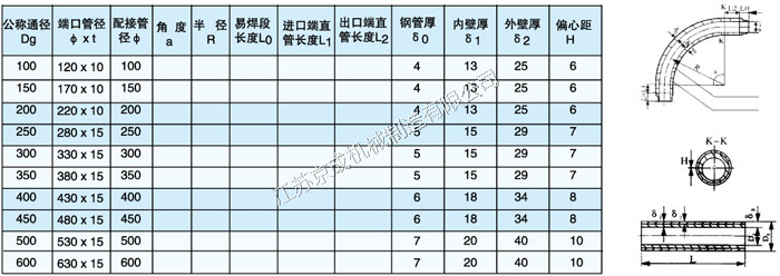 彎管尺寸及規(guī)格 ( 表中a、R、L0、L1、L2依設計要求確定 )