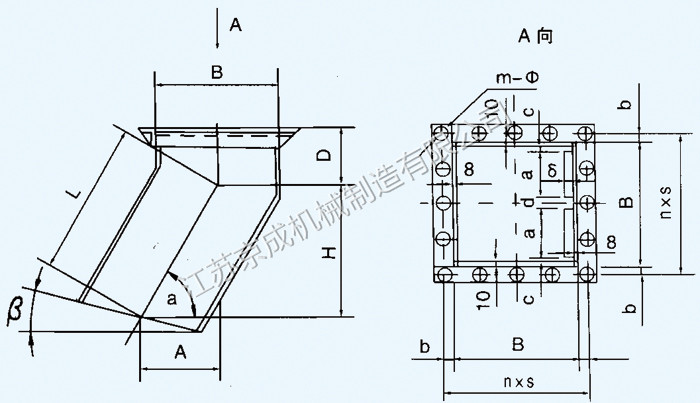 說明:1、表中尺寸和質(zhì)量系按L=550毫米、β=18°編制;2、圖中已包括上部聯(lián)接用緊固件;3、管體采用耐磨材料整體鑄造。