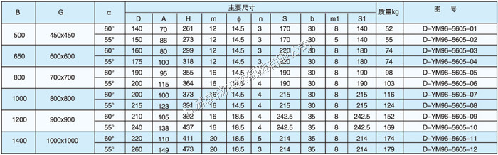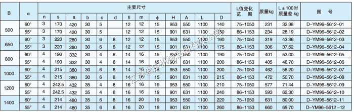 說明:1、表中尺寸和質(zhì)量系按L=1100毫米、β=18°編制;2、圖中已包括上部聯(lián)接用緊固件;3、管體采用耐磨材料整體鑄造。