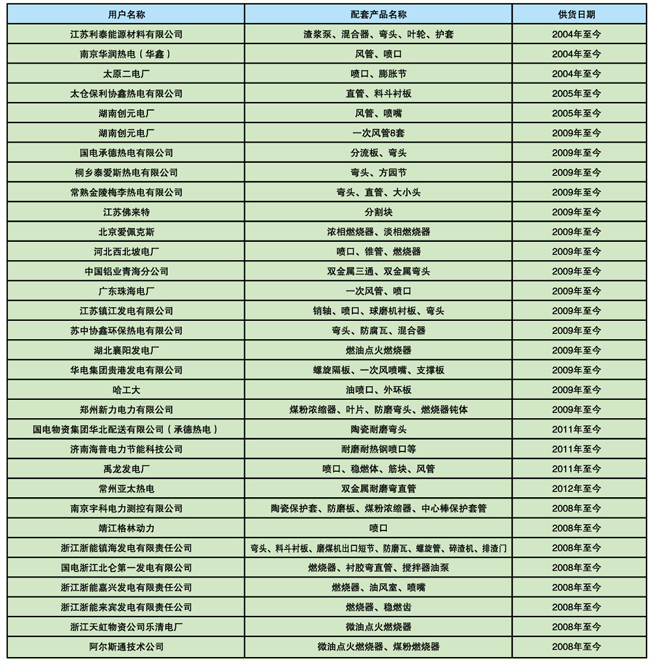 上海鍋爐廠配套項(xiàng)目的產(chǎn)品業(yè)績